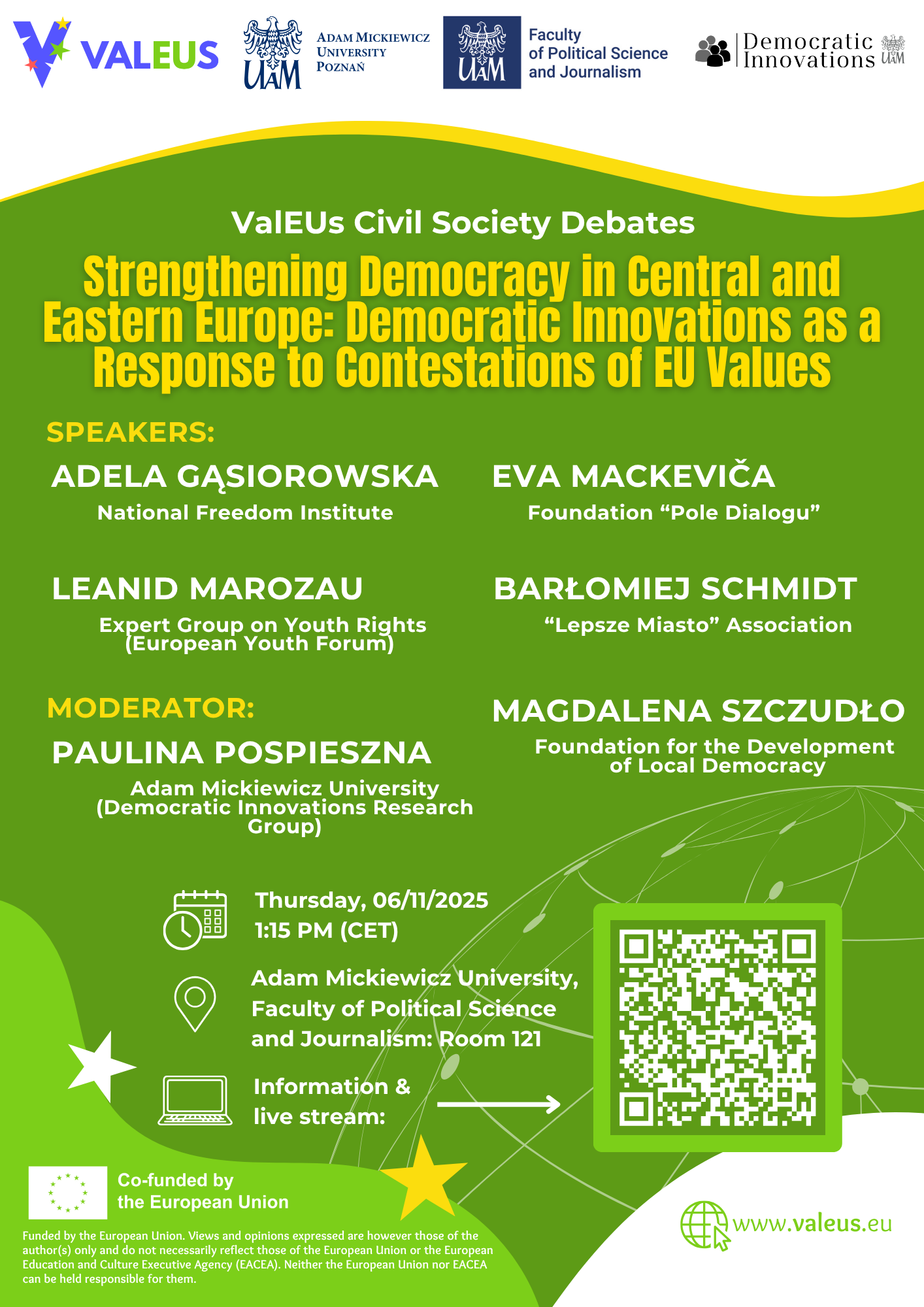 Join our upcoming ValEUs Civil Society Debate on “Strengthening Democracy in Central and Eastern Europe: Democratic Innovations as a Response to Contestations of EU Values” hosted by Adam Mickiewicz University.